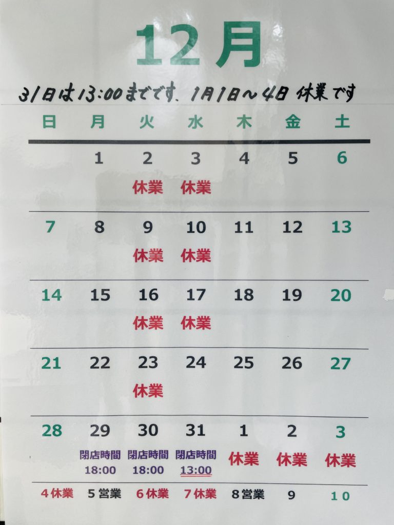 | 定休日 | 毎週火曜日、 第2・第3火・水曜日 +不定休日 (定休日が祝日の場合は 休業致します) |